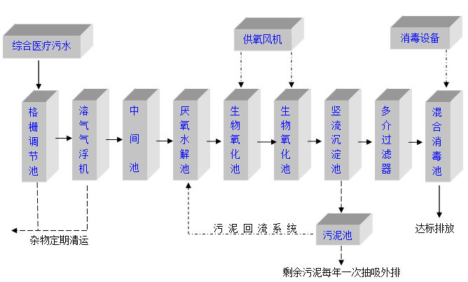 医疗污水来源及成分复杂,含有病原性微生物、有毒、有害的物理化学污染物和放射性污染等,具有空间污染、急性传染和潜伏性传染等特征,不经有效处理会成为一条疫病扩散的重要途径和严重污染环境。